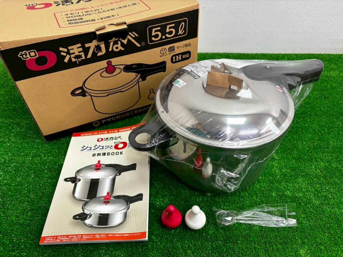 > T0919A【未使用】ゼロ 活力なべ ZK 5.5 本体 オモリ 掃除棒 取扱説明書 料理本 まとめ セット 口径21.9㎝ IH対応 圧力鍋 調理器具 箱付