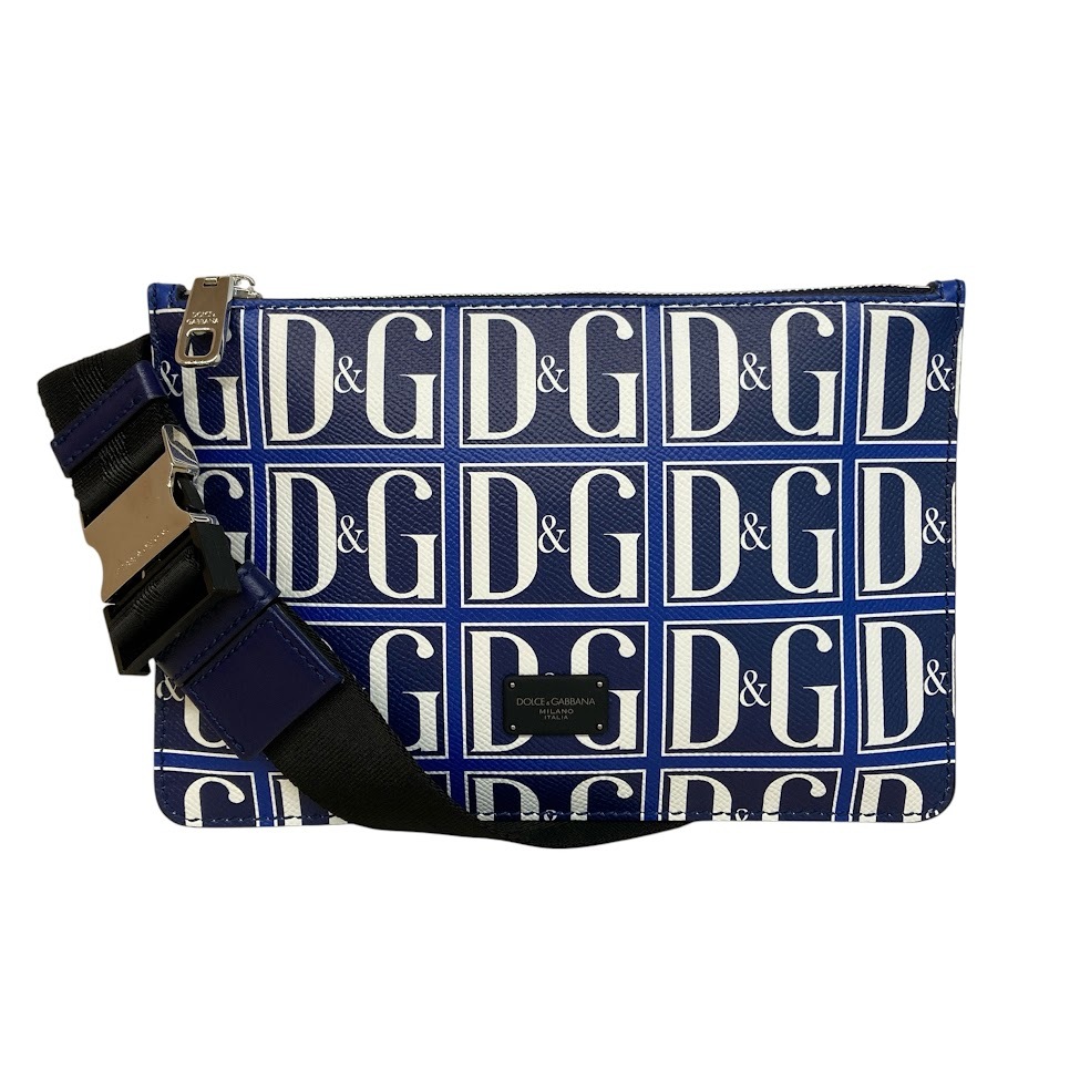 - DOLCE&GABBANA (ドルチェアンドガッバーナ) レザー ショルダーバッグ ボディバッグ ベルトバッグ BM1730 D&G ロゴ ネイビー 【中古】