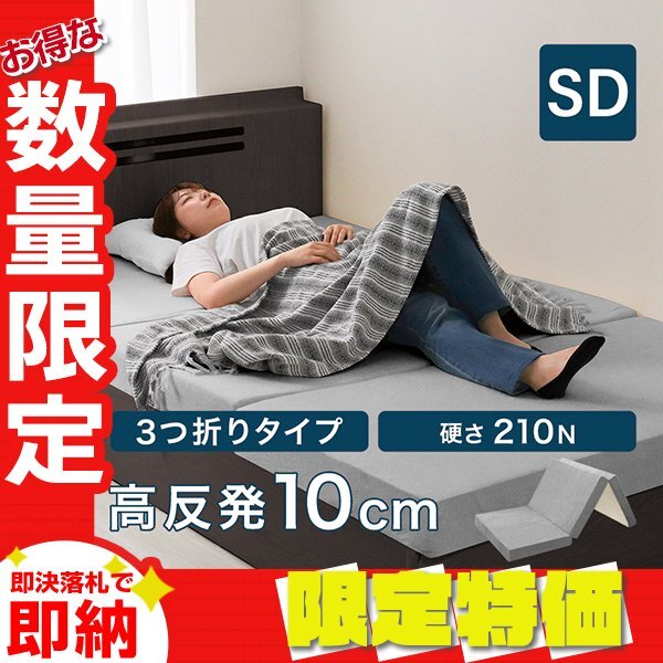 > 【セール】高反発マットレス セミダブル 極厚10cm 硬め210N 三つ折り ウレタン マットレス ごろ寝マット 敷き布団 洗えるカバー グレー