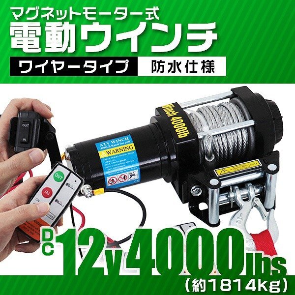 > 電動ウインチ 12v 4000LBS(1814kg) 強力マグネット式モーター 有線コントローラー & 無線リモコン付 DC12V トラック ジムニー ウィンチ