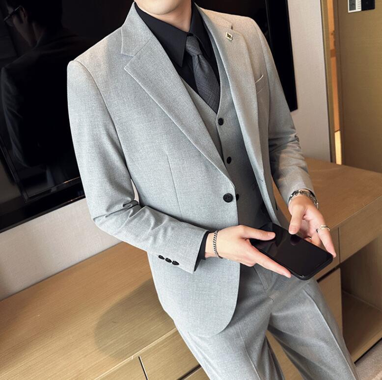 - 新品 メンズ スリーピース スーツセット 結婚式 スタイリッシュ 高級スーツ スリム 細身 3点セット 無地 一つボタン 紳士 ライトグレー 3XL
