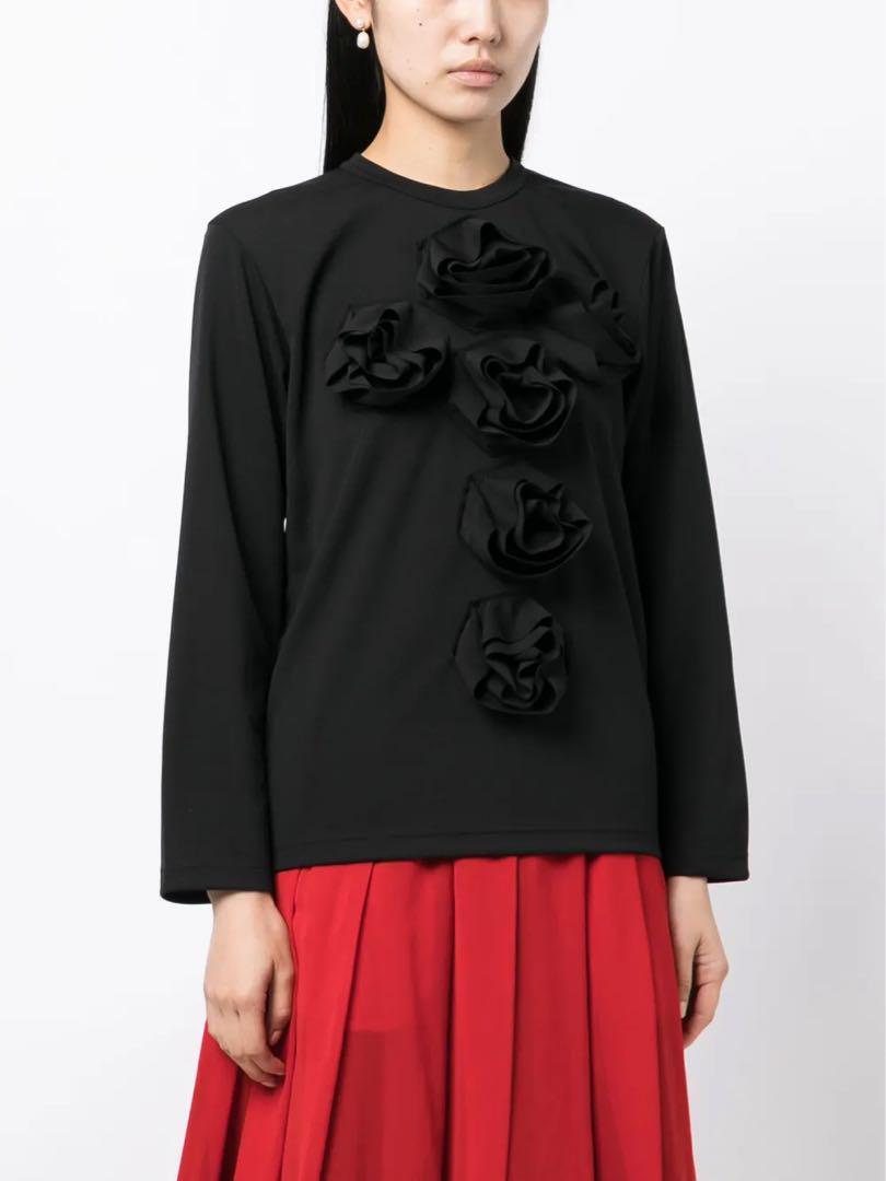 - 23年モデル COMME des GARONS コムデギャルソン フローラルアップリケ カットソー 立体薔薇 黒 ブラック トップス ブラウス シャツ
