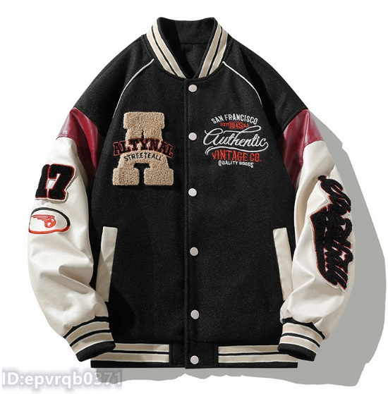 - スタジャン 新入荷 刺繍 上質 野球服 ゆったり メンズ スカジャン ジャケット 紳士 トップス アメカジ サイズ選択可 2色選ぶ/黒/XL