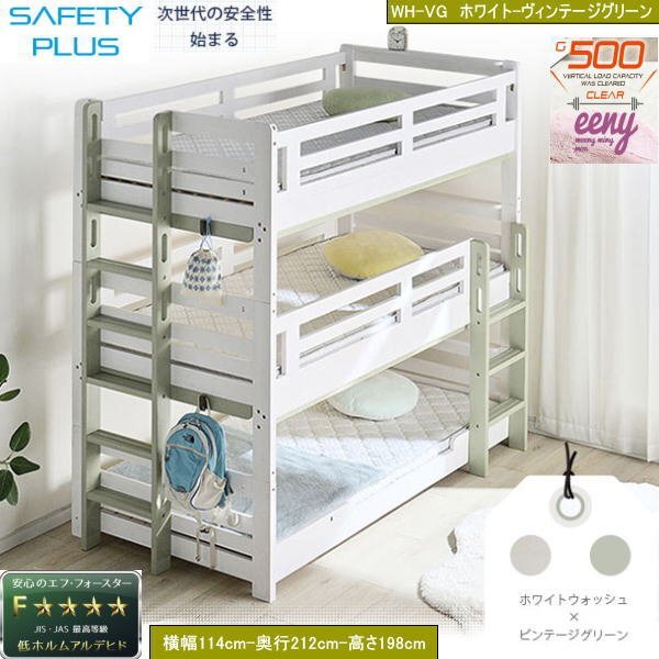 > 3段ベッド イーニー フラット仕様 送料無料 大人も使える 業務用 耐荷重500㎏構造 2段に分けて使える WH-VG ヴィンテージグリーン