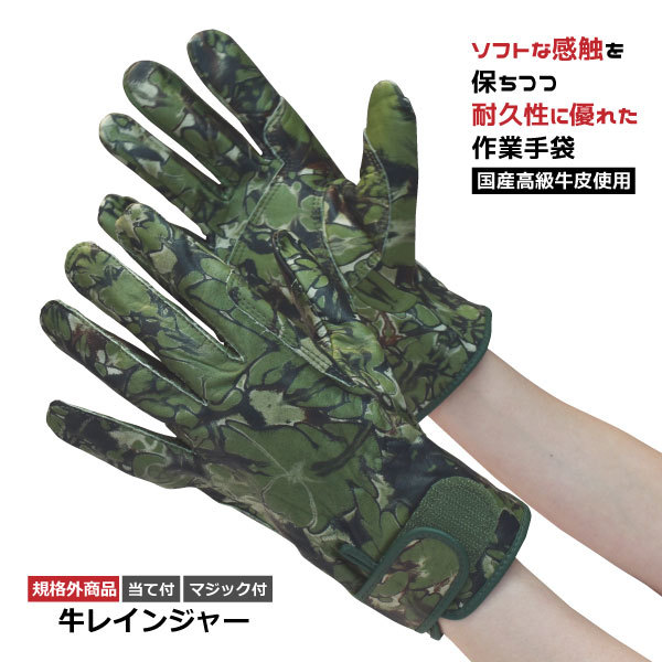 - 【訳あり】牛皮レインジャー当付●緑迷彩柄● ■Lサイズ■ ■耐久性・引裂強度■ ネコポス発送(ポスト投函)