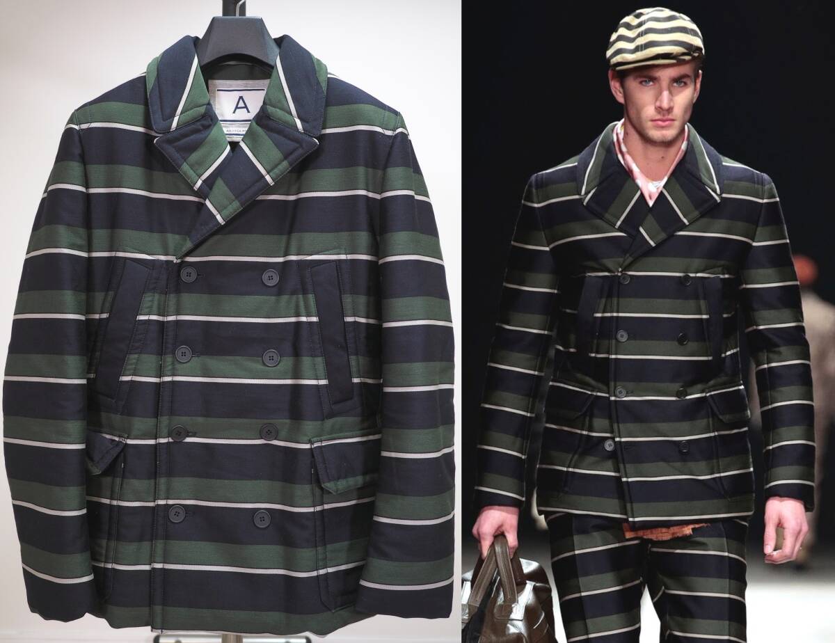 > ANDREA POMPILIO アンドレアポンピリオ 13AW中綿ボーダーピーコート46緑×紺×白 Italy製