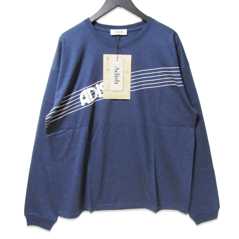 > 未使用 Adish アディッシュ Zahara Printed Logo Long Sleeve Shirt ZLLSN001 長袖Tシャツ プリント ザハラ ネイビー XL 27111210