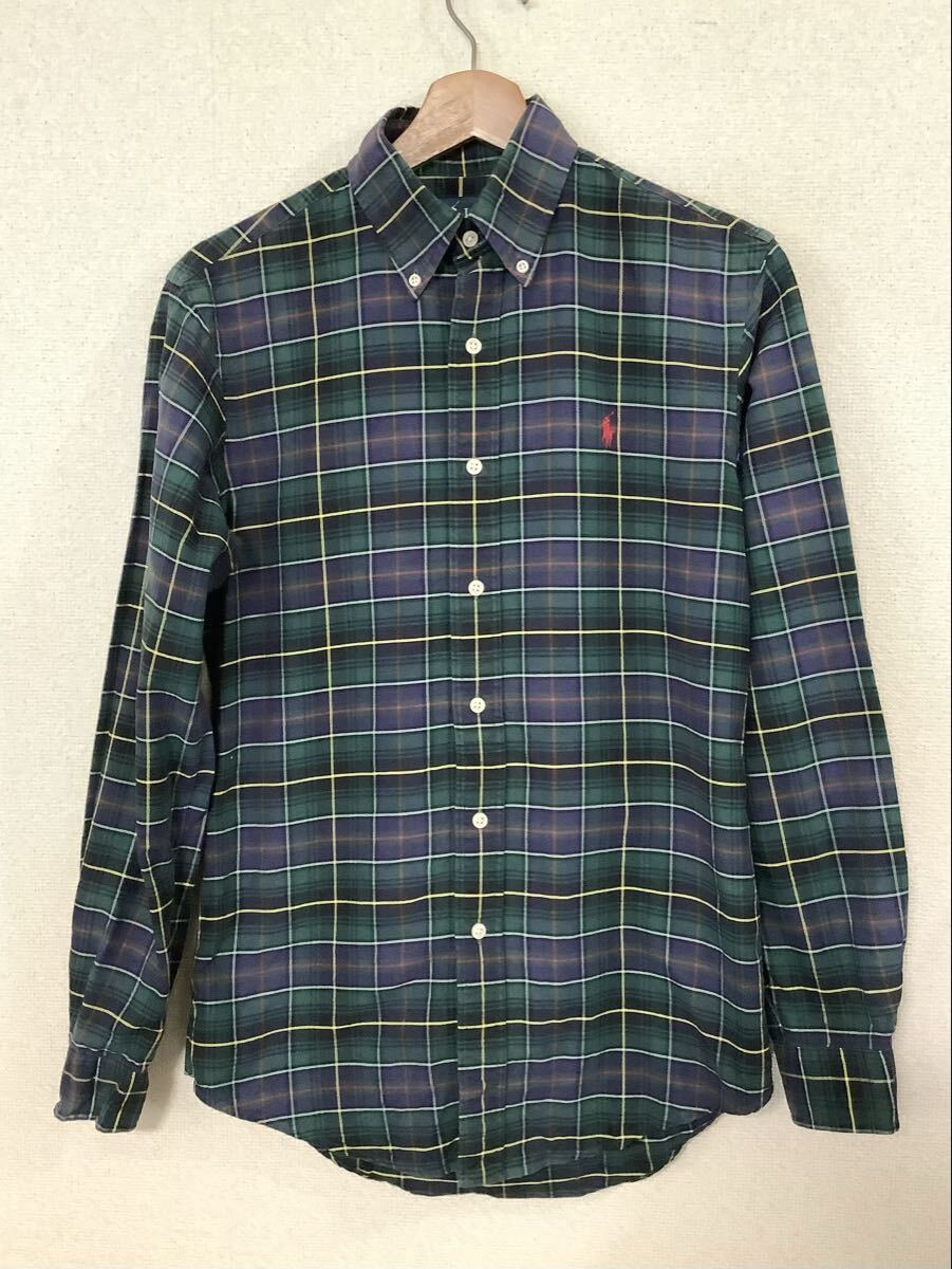> RALPH LAUREN ラルフローレン ボタンダウン チェック 長袖シャツ カスタムフィット セレクト グリーン XS 小さなサイズ