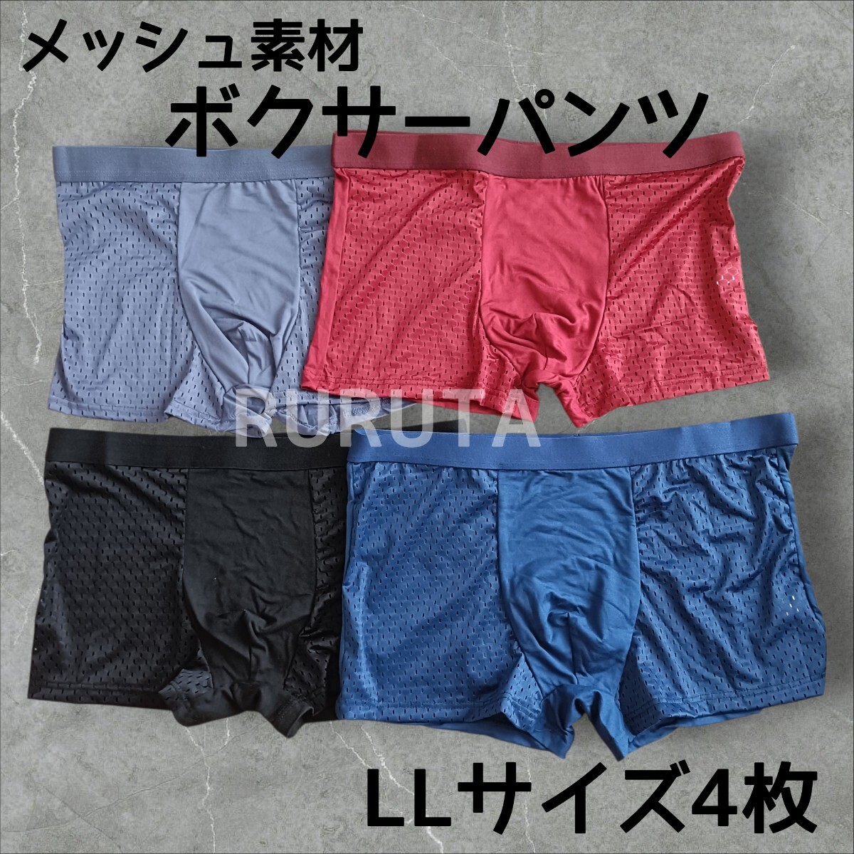 - LLサイズ 4枚セット メッシュ素材 ボクサーパンツ パープル 赤茶 ネイビー ブラック