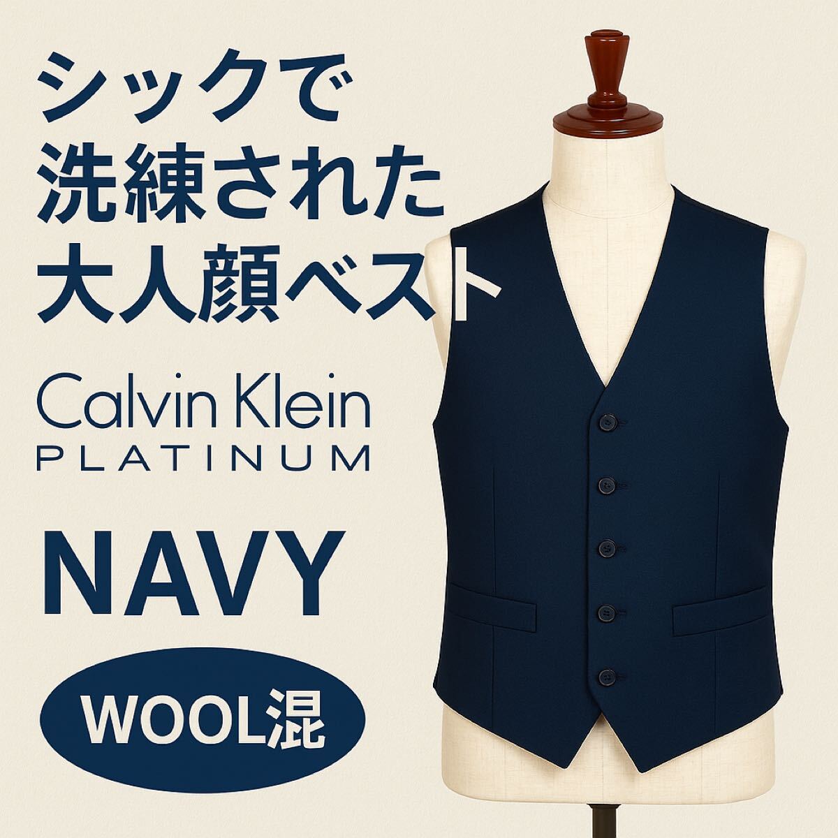 - Calvin Klein PLATINUM ベスト 濃紺系 M相当 メンズ ウール混 オンワード製