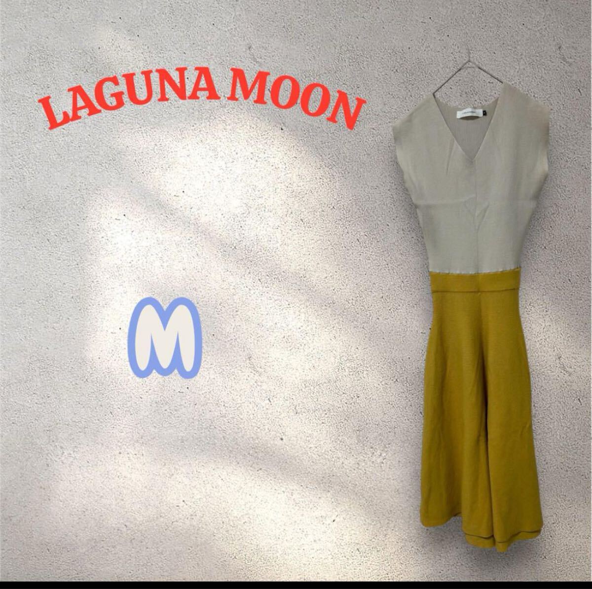 - LAGUNA MOON Vネックリブバイカラーフレンチドルマンフレアーワンピース
