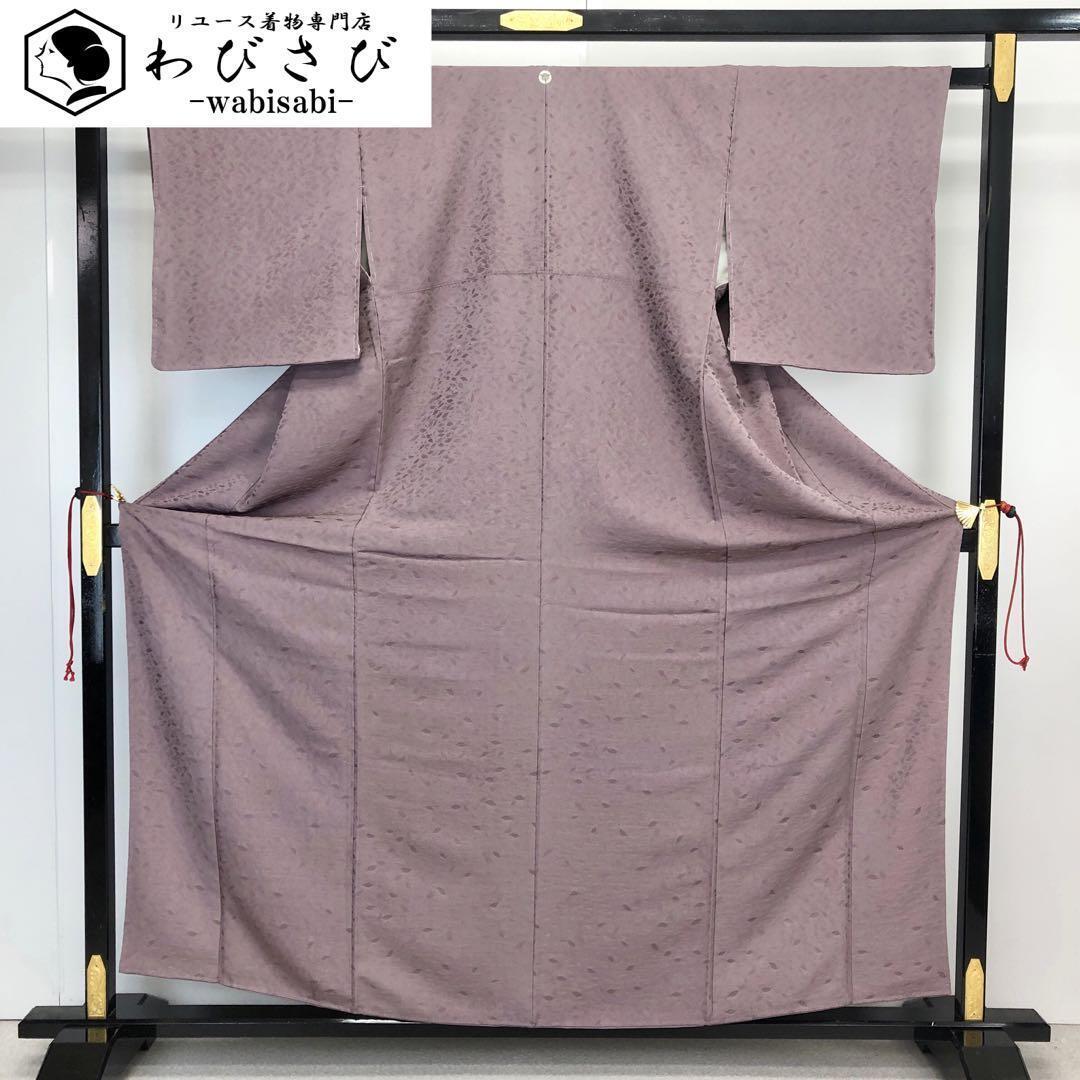 > 色無地 葉模様 紅掛鼠色 縮緬 K-4146 着物 きもの kimono 和服 和装 中古 リサイクル着物 【送料無料】