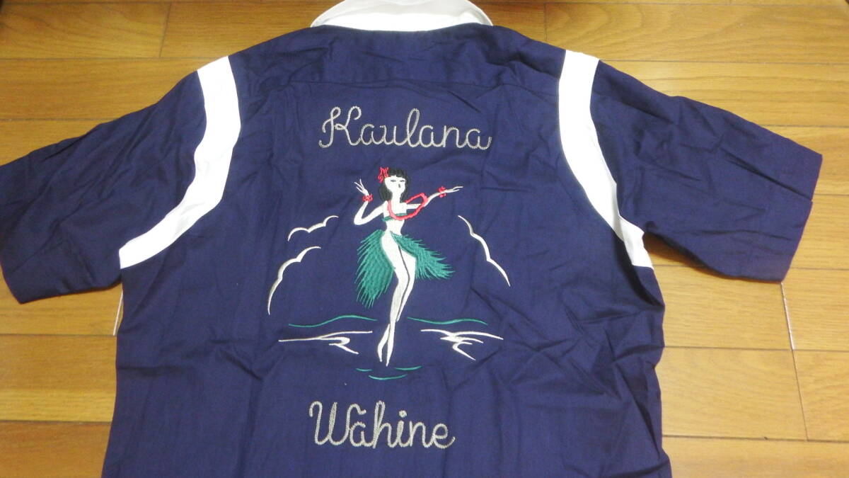 - フラダンス ボウリングシャツ Mサイズ 半袖 シャツ ボーリングシャツ 刺繍 Wahine Kaulana フラガール ハワイ