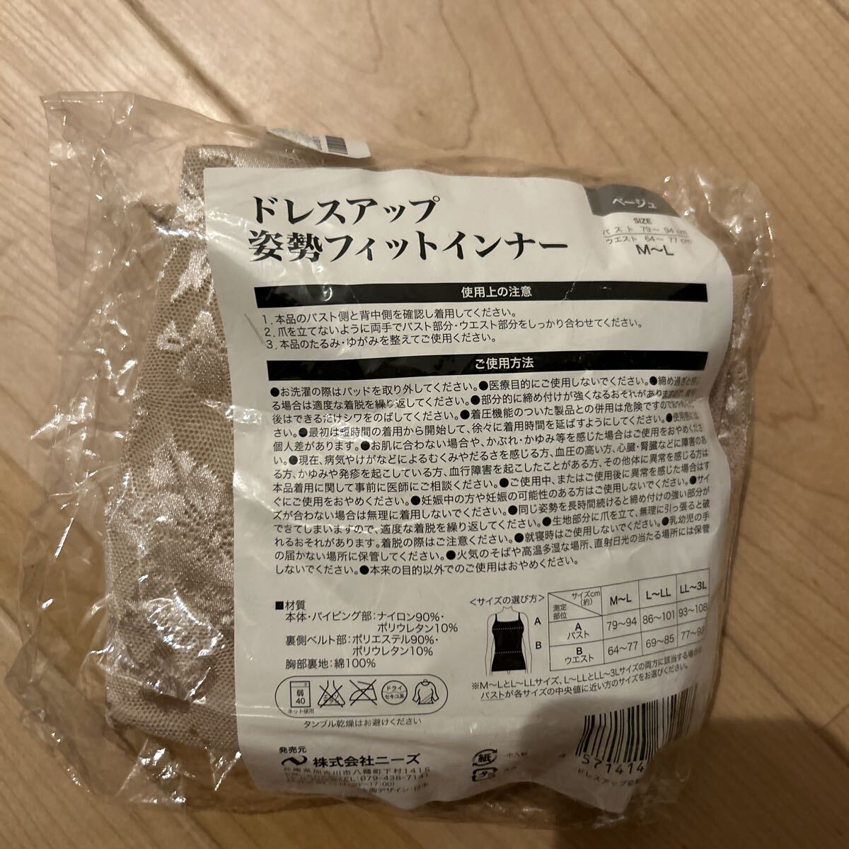 - 新品未使用撮影の為開封 補正下着 フィットインナー キャミソール ベージュ茶色 サイズM L バスト79-94
