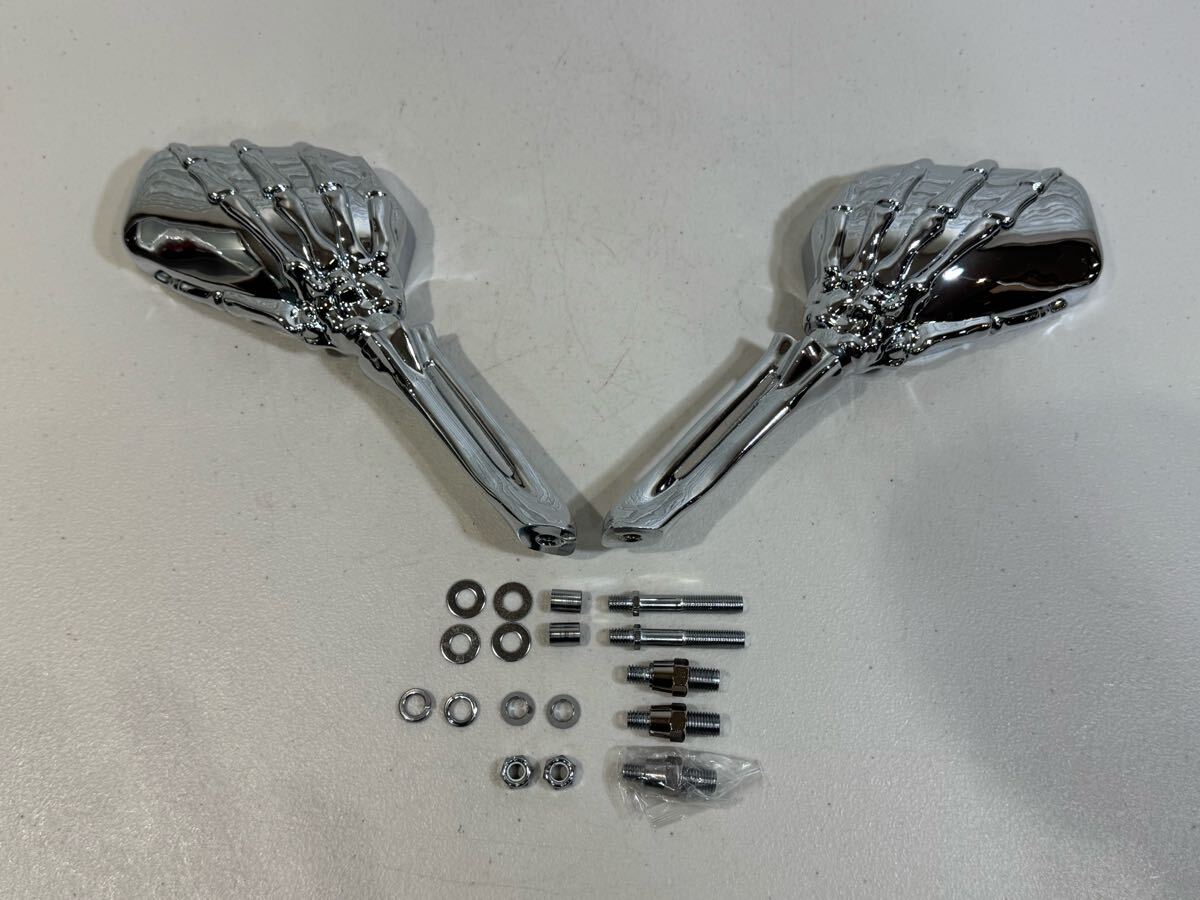 > ハーレー スカル ボーン ミラー 左右 メッキ 骨 骸骨 チョッパー ナロー エボ スポーツスター ショベル ダイナ ソフテイル XL FX FLS FLH