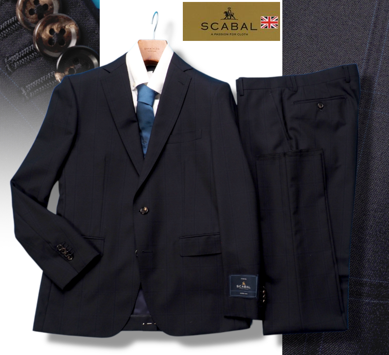 - 新品20.6万円 大手百貨店扱い 春夏 日本製『Scabal スキャバル 英国製生地』Super120Sウール チェック柄 スーツA8濃紺(B)1703871