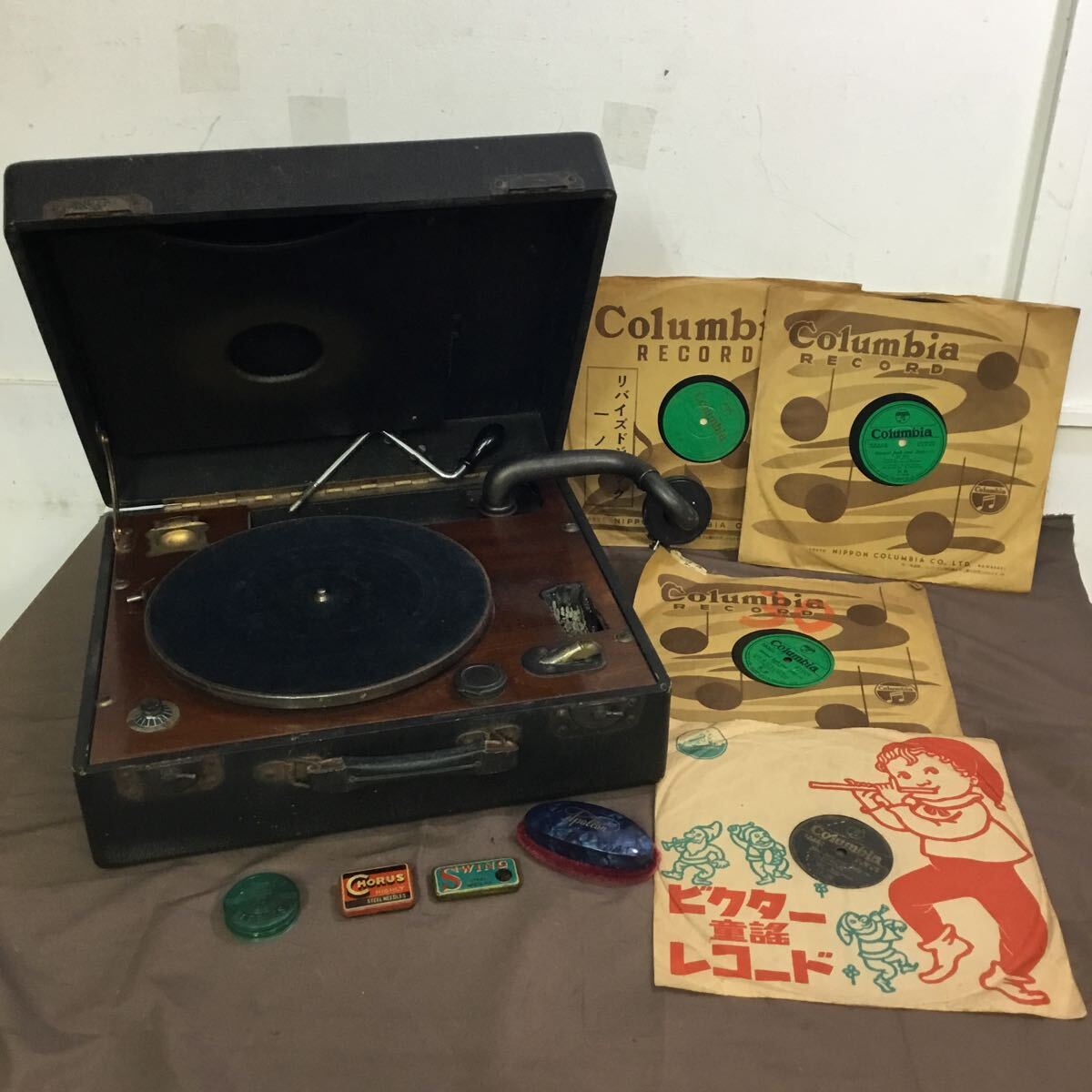 > (98)【音出し確認済】昭和レトロ レコードプレーヤー オーディオ機器 ポータブル ケース入り ターンテーブル アンティーク インテリア