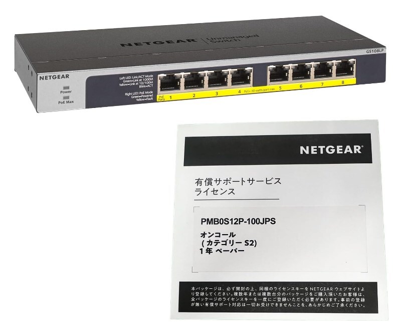 - NETGEAR GS108LP スイッチングハブ 8ポート 1Gbps PoE+対応 60W + 有償サポートライセンス1年