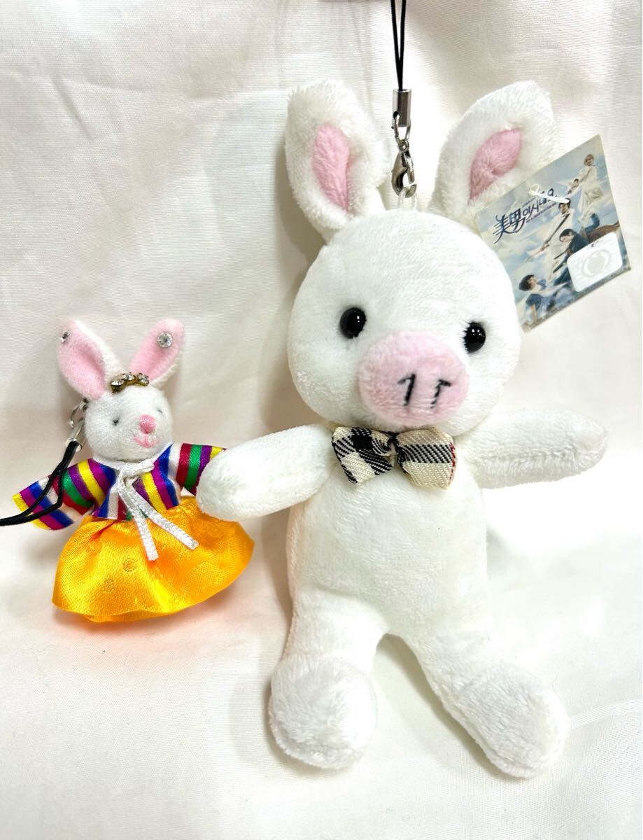 - 韓国 美男ですね ぶたうさぎ チマチョゴリうさぎ ぬいぐるみストラップ 開封経年品 レトロ