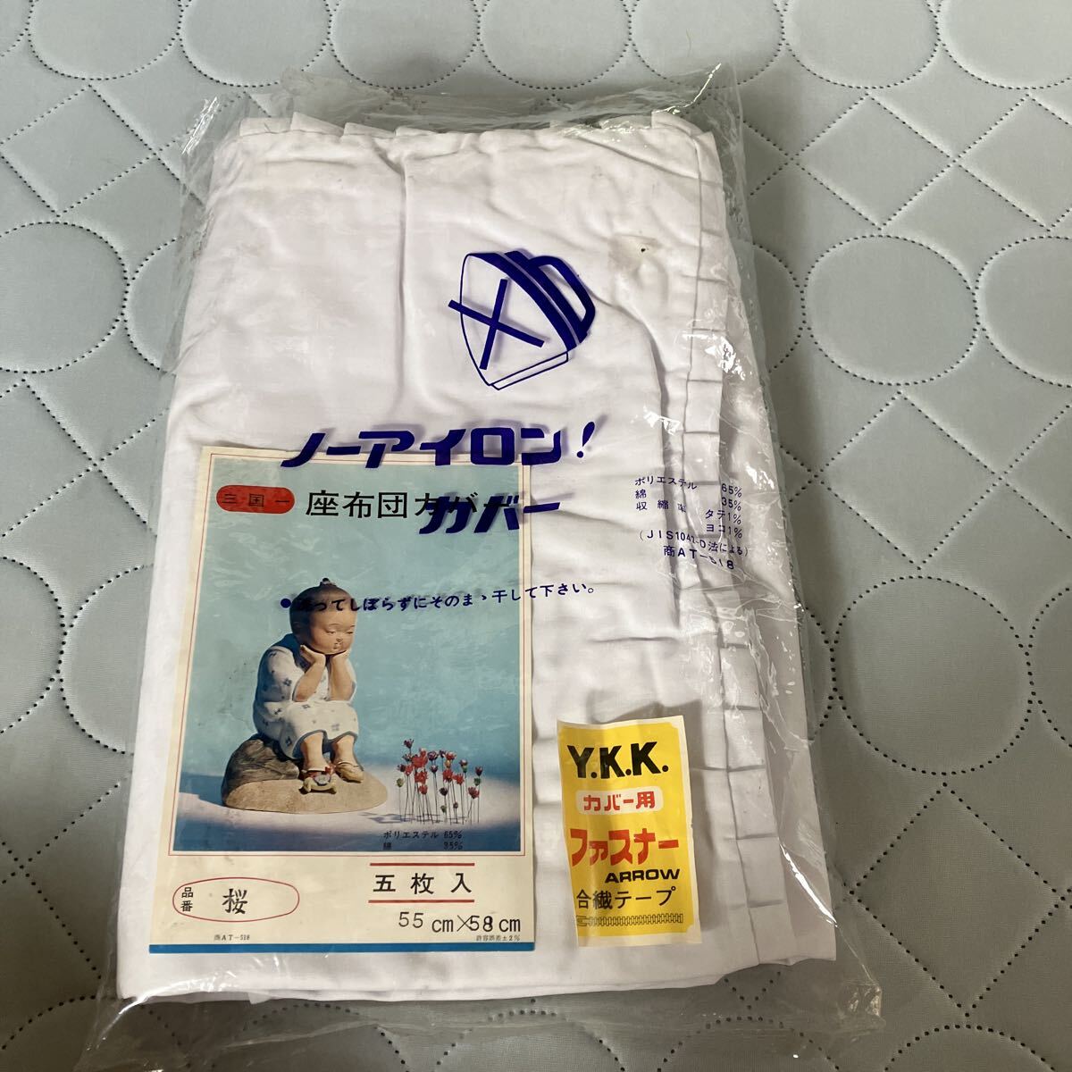 - 座布団カバー 白色 5客セット ポリエステル65%、綿35% サイズ約55x 58㎝(品番 桜) 訳あり レトロ(送料無料)