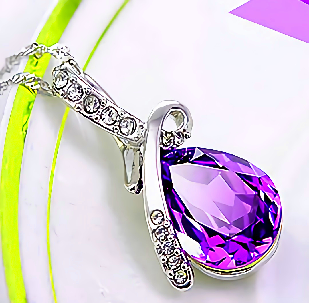 - 新品★送料無料★紫水晶ピンクアメジスト雫ダイヤ プラチナ仕925 シルバーネックレス誕生日プレゼント旅行秋祭冬休連休ギフト国内発送