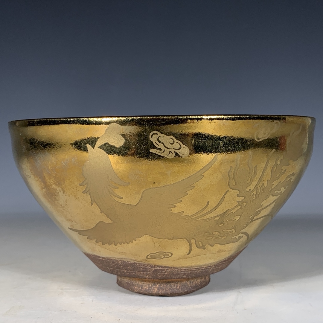 - 宋代風 古陶磁器 建窯 黄金盞 龍鳳紋 盞 盃 建盞 茶盞 酒碗 供御款 陶芸 時代物 東洋彫刻 旧家蔵出し 唐物 中国古玩 古美術品