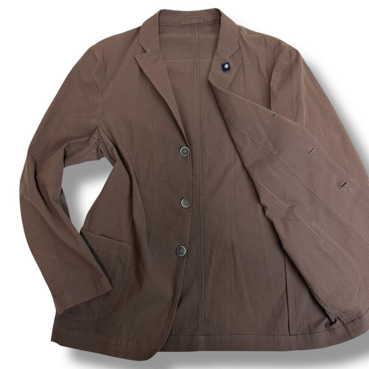 - 929 希少XL!!ラルディーニ【定価約15万】LARDINI テーラードジャケット ブレザー ブートニエール シアサッカー 50 LL ブラウン ビジネス