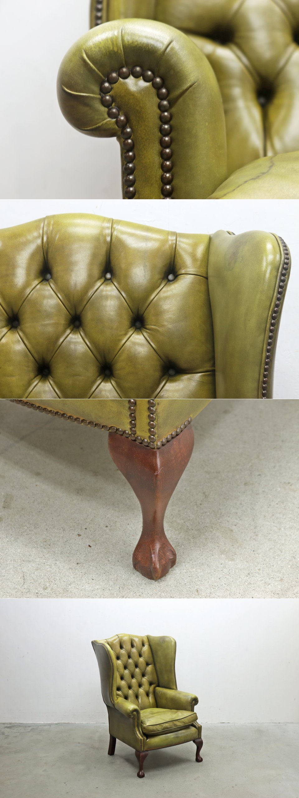 > ◆英国 イギリス ヴィンテージ ウィングバック 本革 1Pソファ ラウンジチェア レザー/アンティーク洋館サロンカフェ店舗什器/PIT02042◆