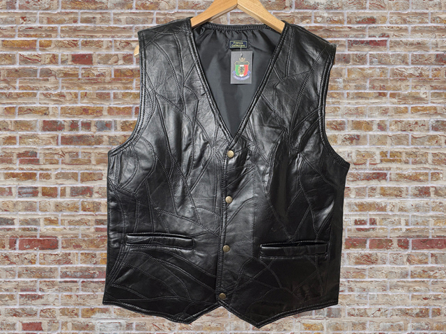 - 41132-1-b162 Mサイズ 黒 Franco Collezioni ラム革カジュアルパッチワークベスト