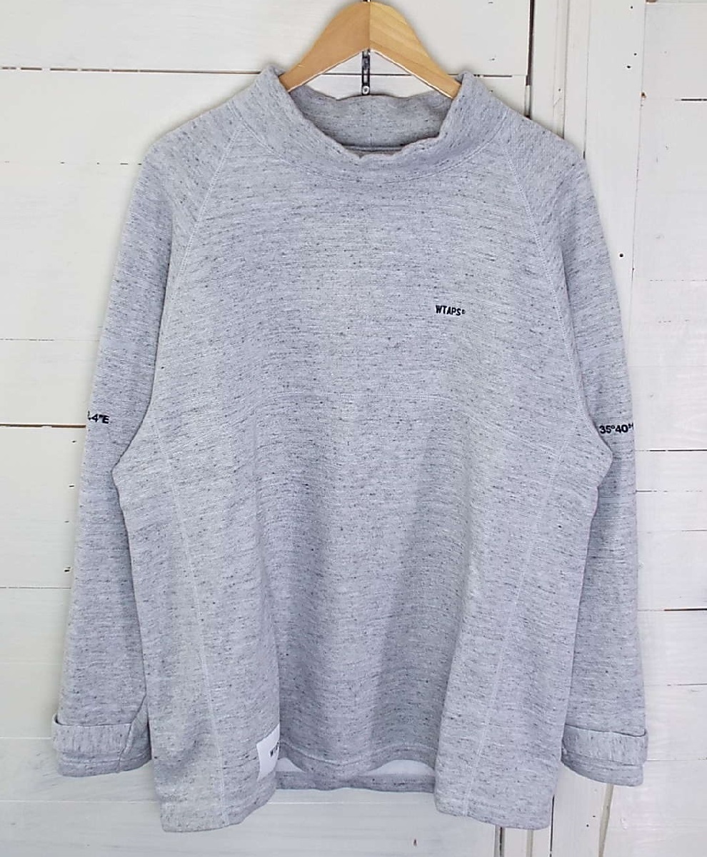 > T1811〇WTAPS(ダブルタップス)スウェットシャツ ハイネック 裏起毛 刺繍ロゴ グレー Mサイズ