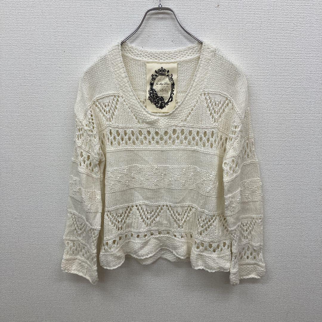 - Jet Lag Drive(38)スケ編みニット*ノルディック*Uネック*白