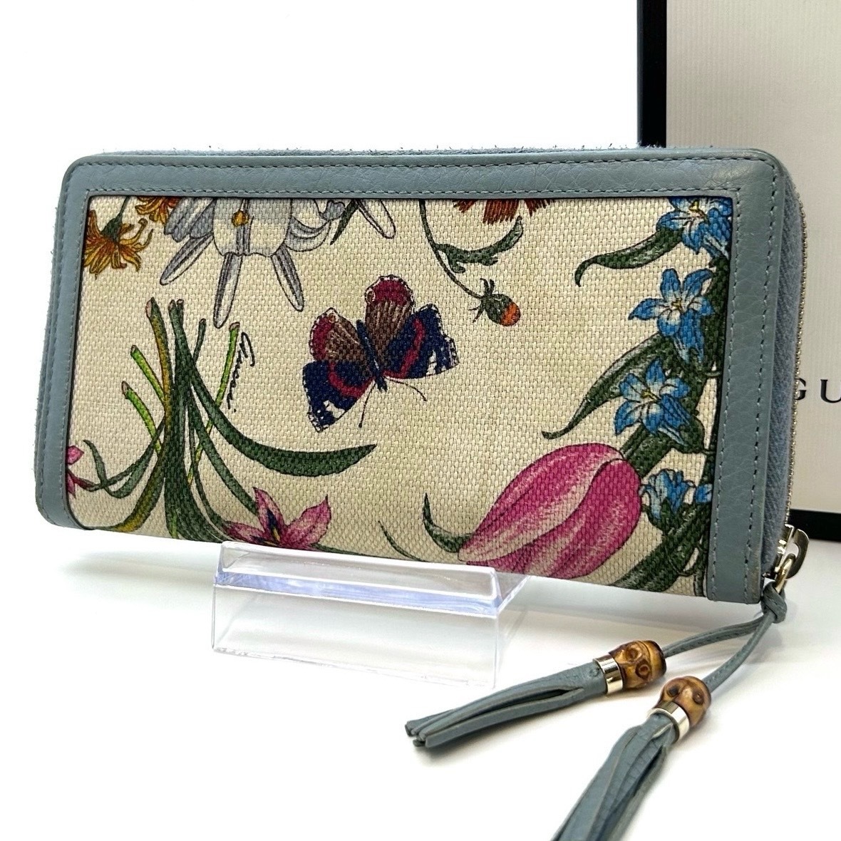 > 50周年日本限定 GUCCI グッチ 長財布 フローラ 花柄 バンブー ラウンドファスナー キャンバス レザー 小銭入れ 札入れ