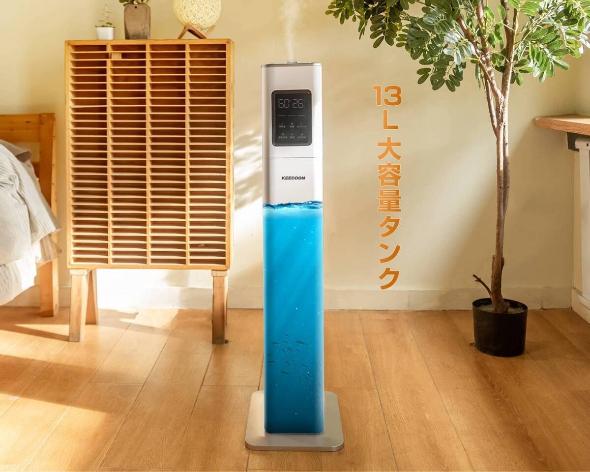 - 3段階霧量調節機能搭載の大容量タワー型加湿器