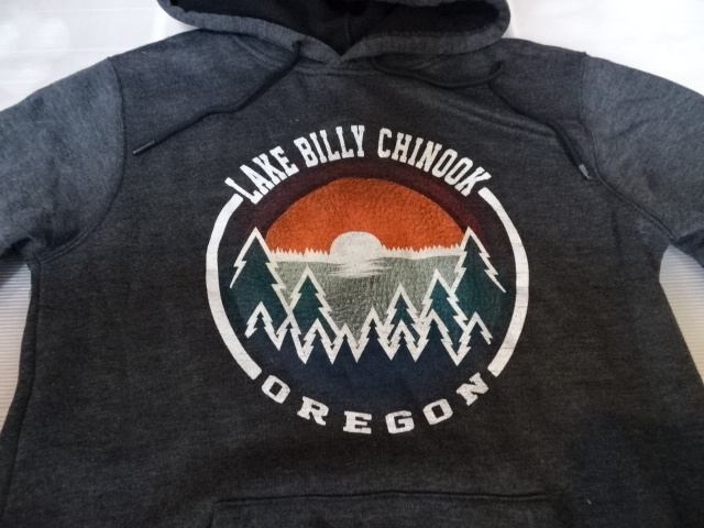 > 激レア USA購入大自然の宝庫 オレゴン州 ビリー チヌーク湖 【LAKE BILLY CHIOOK】 イラストプリント プルオーバーパーカーUS S 中古品
