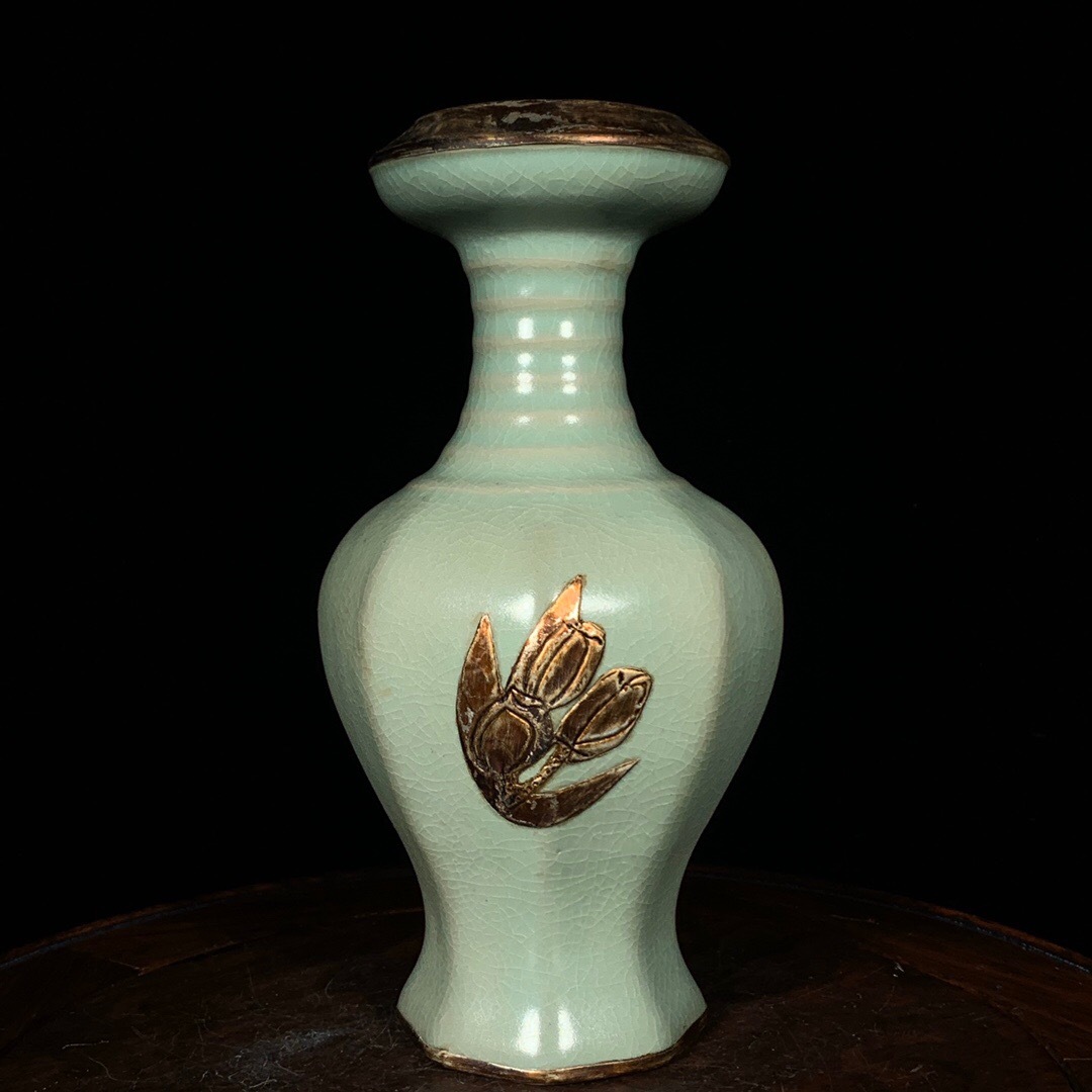 - ▽鴻▽ 宋 古陶瓷品 汝窯 包口 銀嵌 束口瓶 陶藝 古賞物 古董品 時代物 稀少珍品 中国古玩 中国古美術