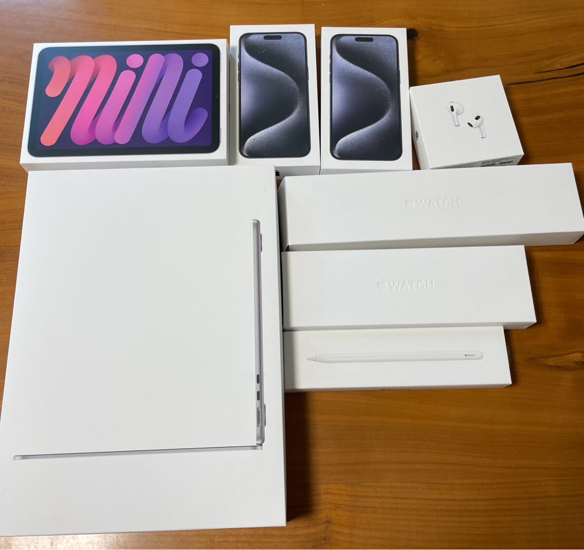 > Apple 箱のみ まとめ AppleWatch pencil AIRpods iPhone15proMax iPad mini 第6世代 MacBook Air 13-inch ケース 空箱