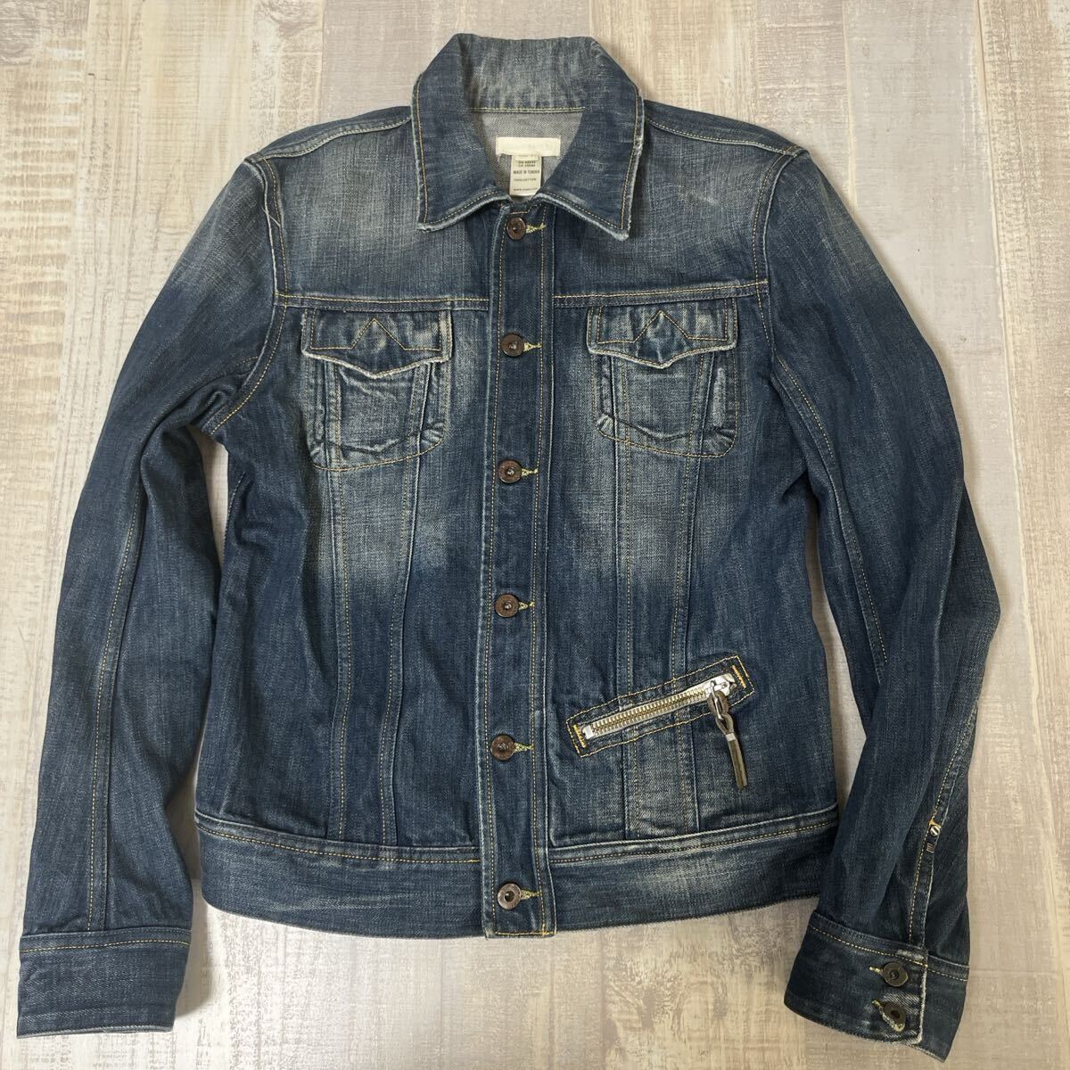 > 【名作 希少】DIESEL デニム ジャケット ディーゼル インディゴ S ユーズド加工 Gジャン ジージャン ジーンズ ブルゾンメンズ ヴィンテージ