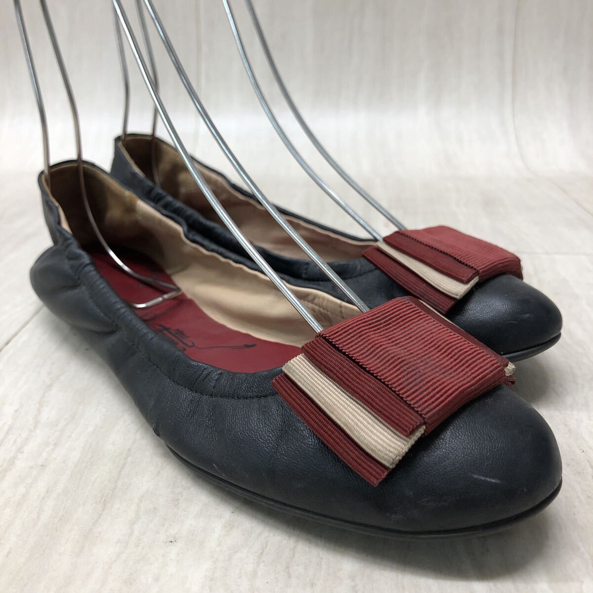 - M298 FN-250912-751 BALLY バリー バレエシューズ フラットシューズ レザー リボン レディース ブラック系 サイズ表記 37