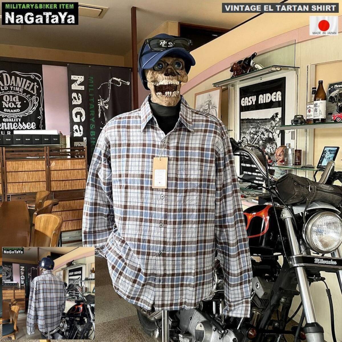 > VINTAGE EL ヴィンテージ イーエル メンズ 長袖 タータンチェック シャツ サックス Lサイズ 薄手 カジュアルシャツ アメカジ 日本製