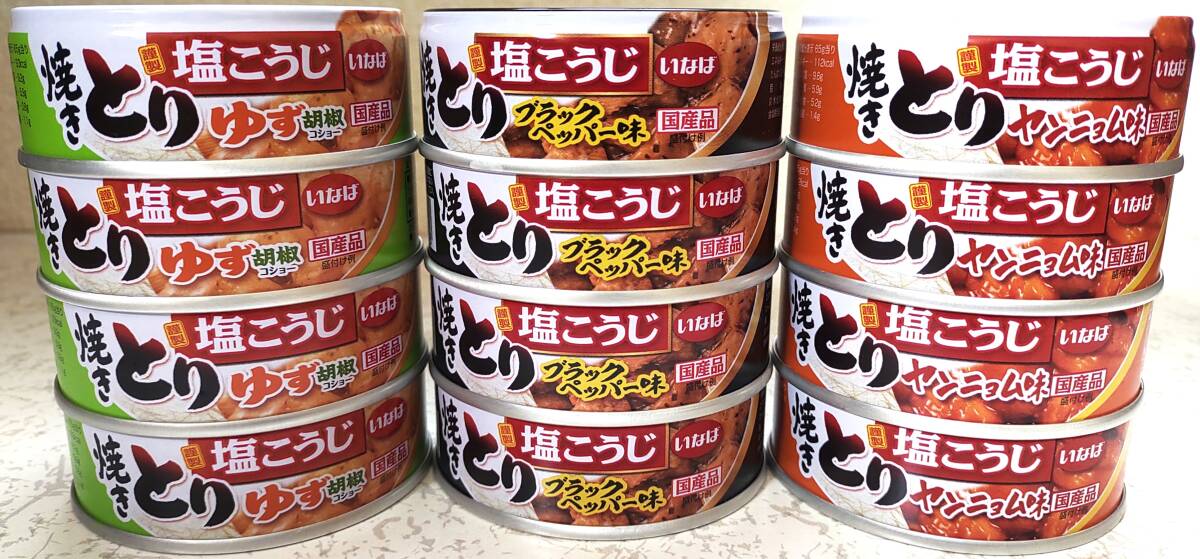 - 国産品 いなば 焼きとり ゆず胡椒 4缶+ブラックペッパー味 4缶+ヤンニョム味 4缶 合計12缶セット焼き鳥 缶詰 非常食 保存食 送料無料