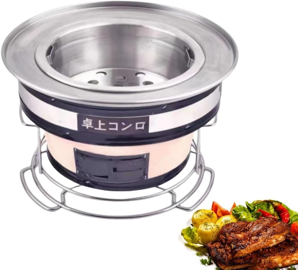 - 珪藻土丸型七輪 セラミック火鉢 炭火焼きコンロ 室内 焼き網つき 、テーブルバーベキューグリル、屋外キャンプグリル用焼き鳥炭ポータブル
