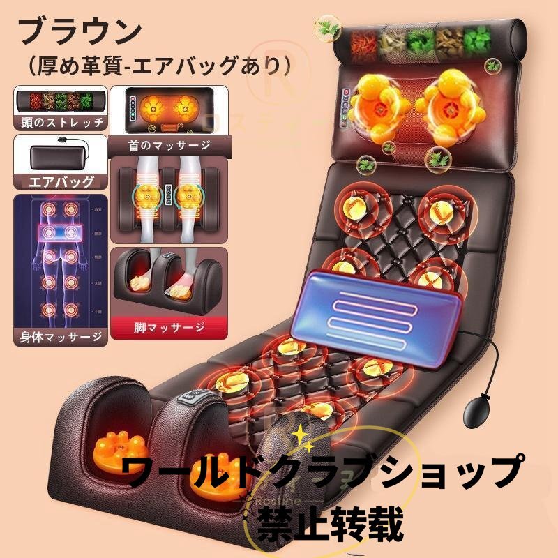 - マッサージシート 折りたたみ 静音 寝ながら マッサージ器 マッサージャー 多機能 全身 首 腰 肩 背中 マッサージチェア ブラウン