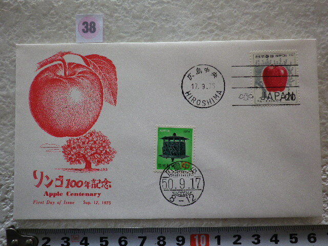 - FDC りんご100年記念 1975年 2貼2消 広島中央・機械ハト印 解説書有 jps●38●同梱大歓迎