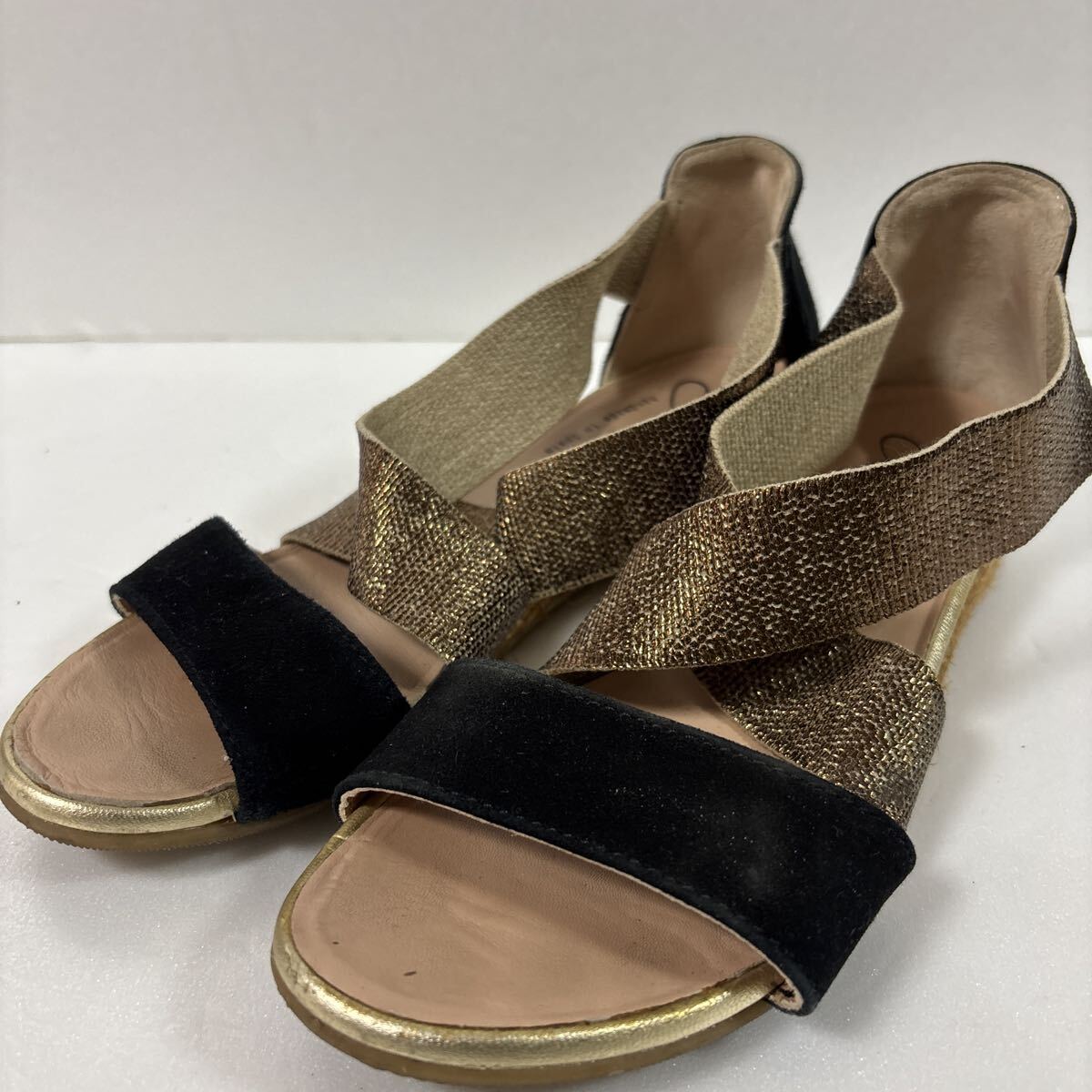 > ガイモ GAIMO サンダル クロスベルト メタリック ウェッジソール 36 ゴールド 黒 ブラック レディース 23〜23.5㎝