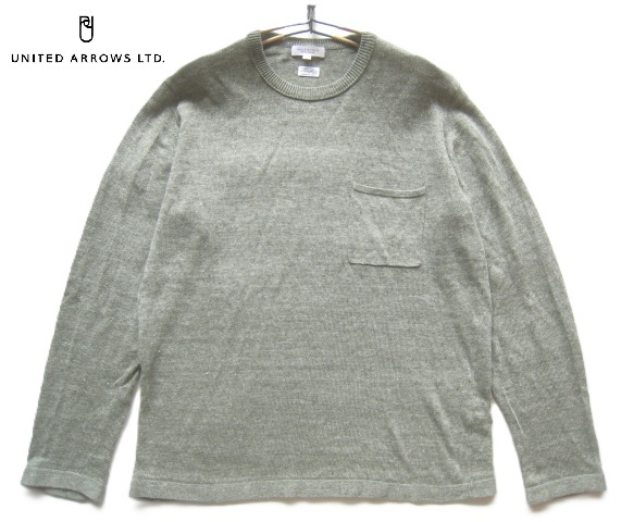 - 美品!!ユナイテッドアローズ ビューティ&ユース UNITED ARROWS BEAUTY&YOUTH*麻100% Linificio リネンニットセーター L カーキ