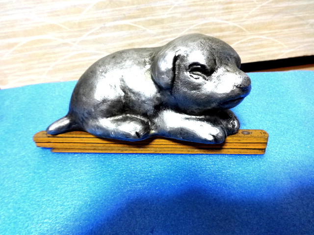 - 鉄製 犬のオブジェ 置物 仔犬 美術工芸品 ◯の中に大の文字 の作家印 錆無し すやすやと眠っています