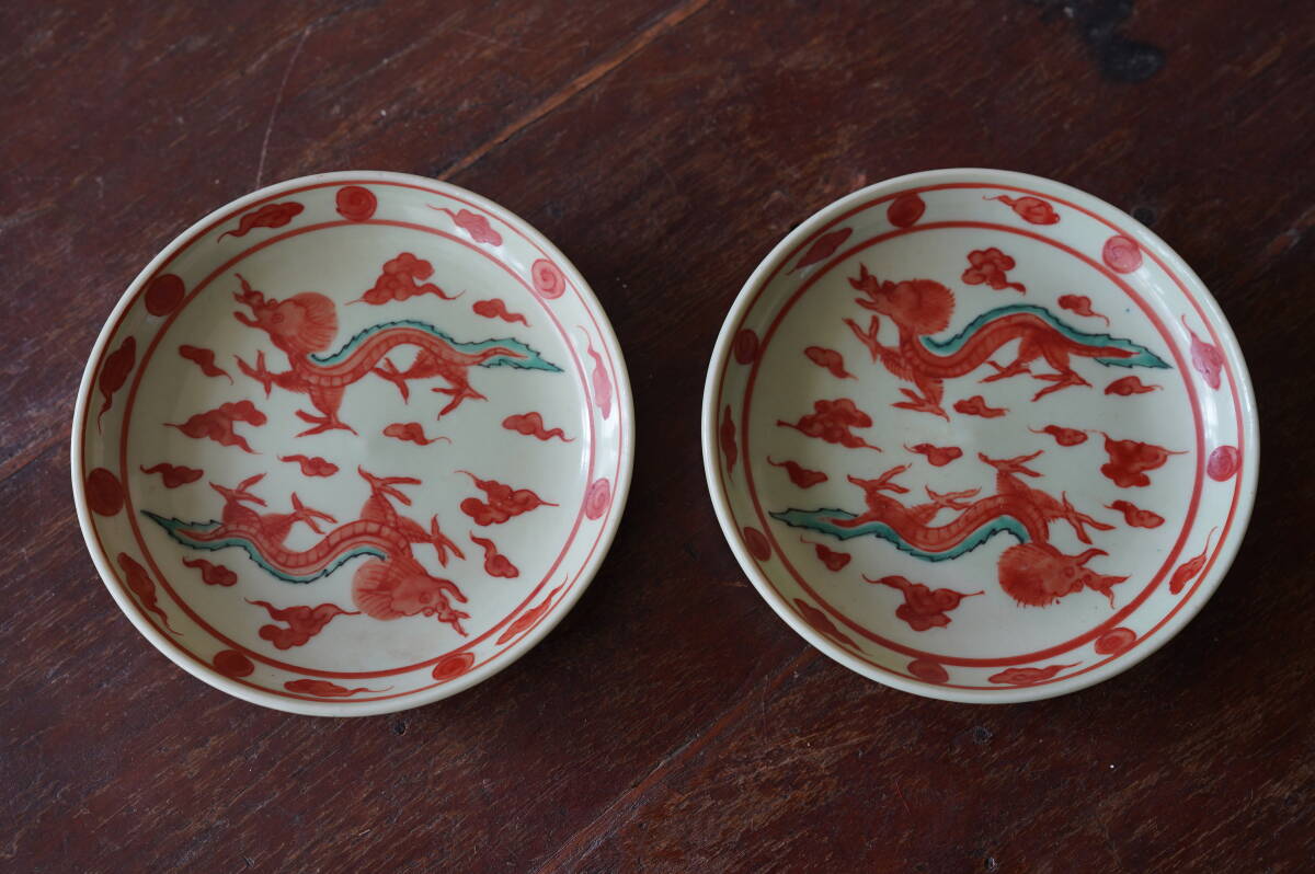 - 器 セット 2枚セット 中国 中国美術 骨董 小皿 ヴィンテージ 龍 染付け 絵付け