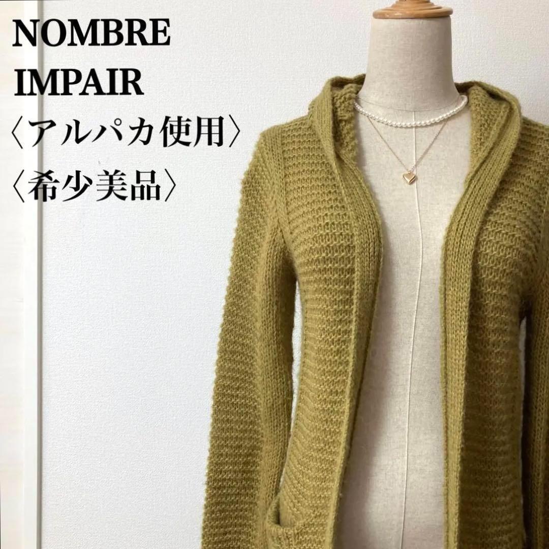 - 美品希少ノンブルアンペール NOMBRE IMPAIR ボタンレス長袖カーディガン アルパカ ウール混 ふんわり ざっくり カーキ フリーサイズ
