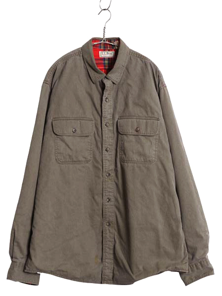 > 80s USA製 エルエルビーン コットン ツイル 長袖 シャツ メンズ L / 古着 ヴィンテージ チェック フランネル ライナー付き ジャケット 無地