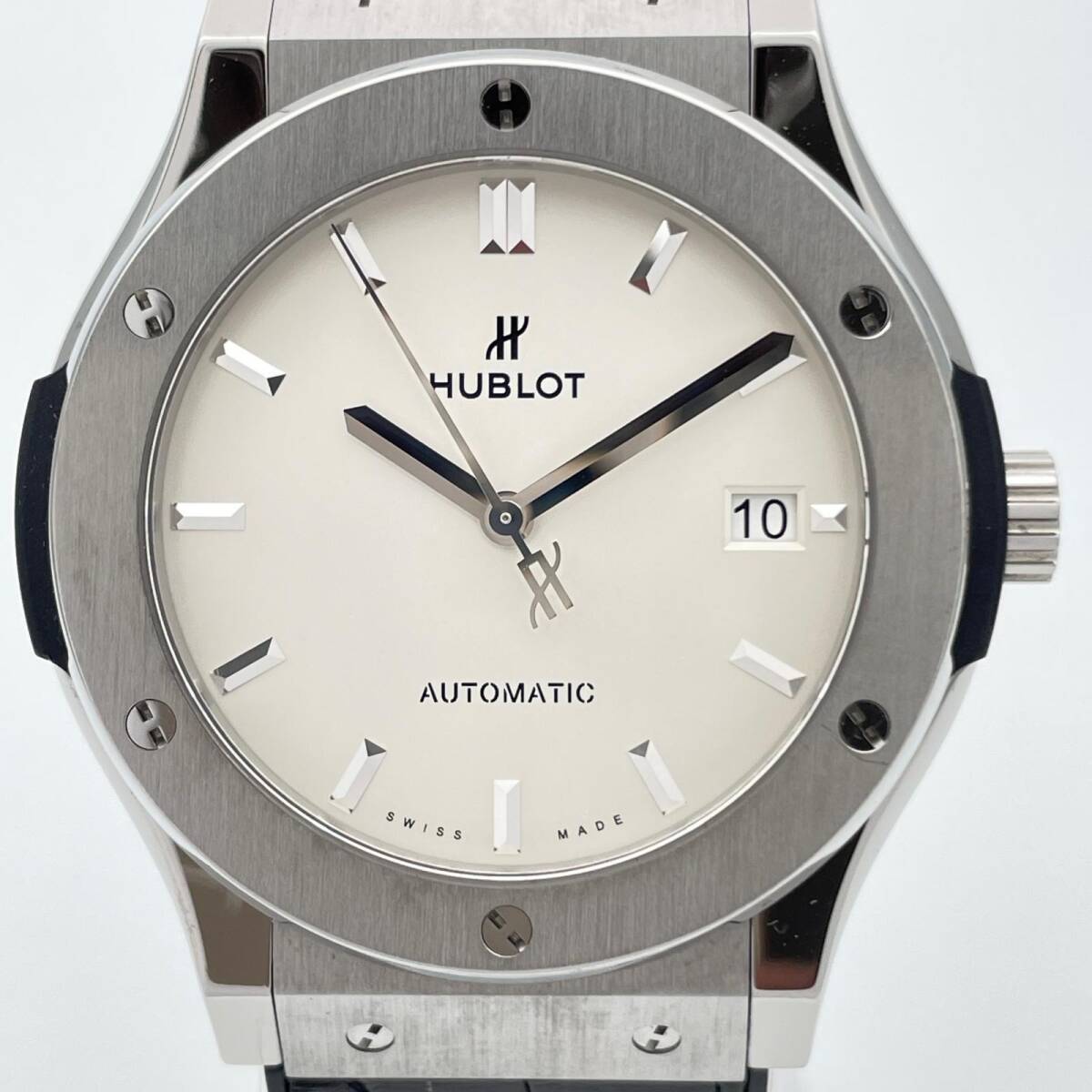 > ウブロ クラシックフュージョン チタニウム オパリン レザーベルト 511.NX.2611.LR 自動巻 ギャラ付 腕時計 中古 HUBLOT ◆2008